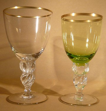 Mågeglas uden måge fra Lyngby med guldkanter og snoet stilk Rød og hvidvin