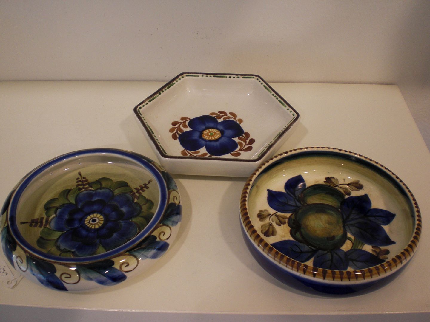 Fra venstre: Skål i perfekt stand fra 1925 med blomsterdekoration 1329 - form med buet kant 1269. Signeret BA. Diameter 13 cm. - højde: 3 cm. Pris: 475 kr.