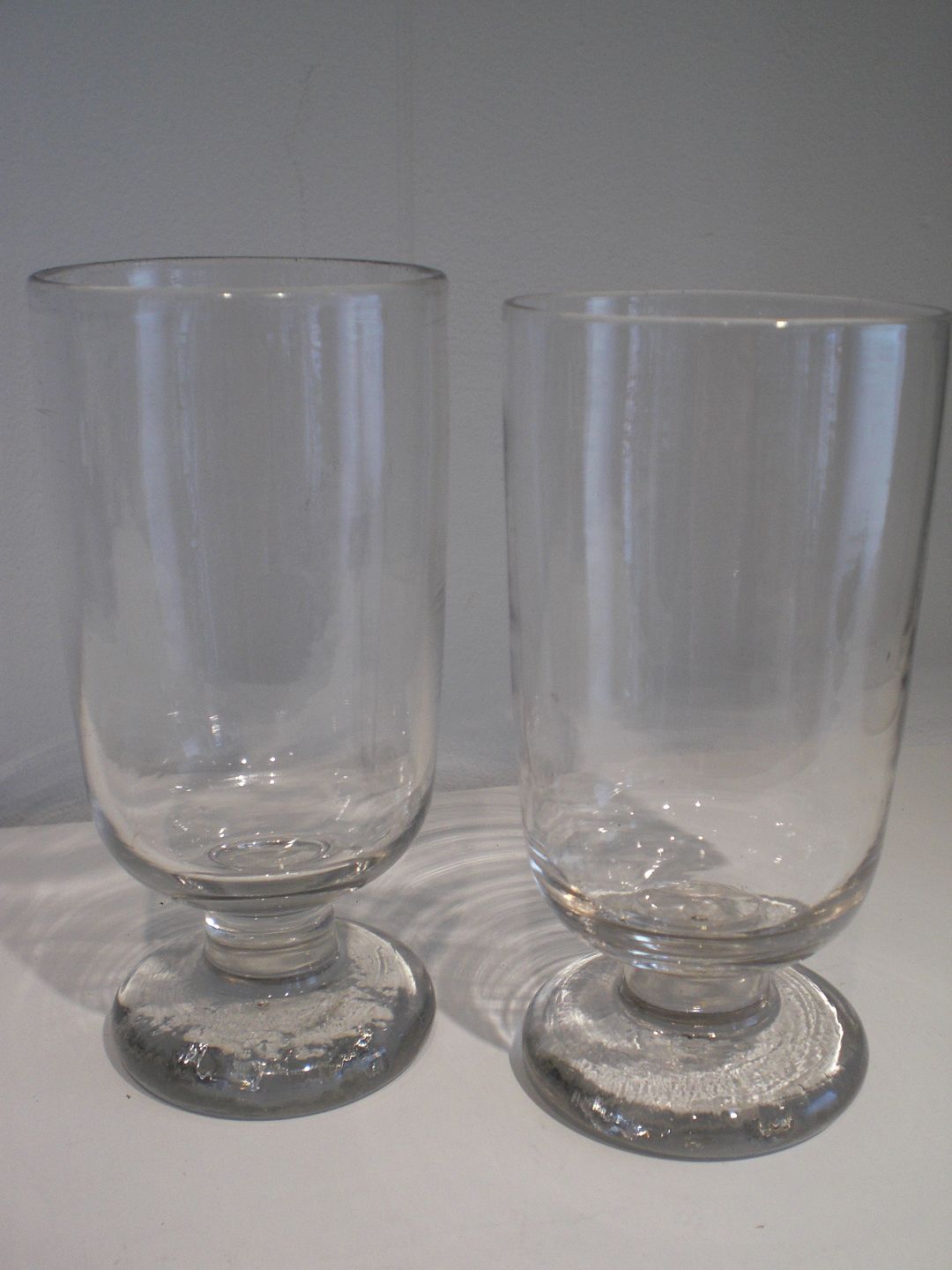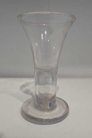 Et par toddy glas med kort tyk stilk på lige afknækket fod. Ca. 1900. Højde: ca. 15 cm. Sælges som par.