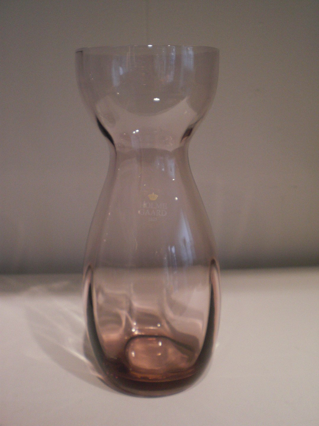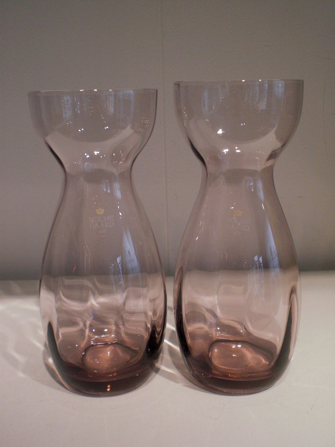 2 lyse manganfarvede hyacintglas designet af Jacob Bang (1895 -1965) for Holmegaard ca. 1950. I fin stand med originalt fabriksmærke.