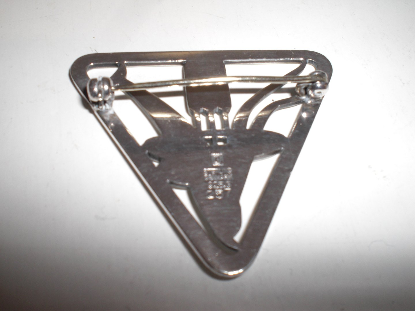 Georg Jensen sølvsmedie (1909 - ) trekantet Art Deco delfinbroche i sterling sølv - dessin 257 designet af Arno Malinovski (1899 - 1976). Stempel 1933 - 1944. I fin stand med tidstypisk slid.