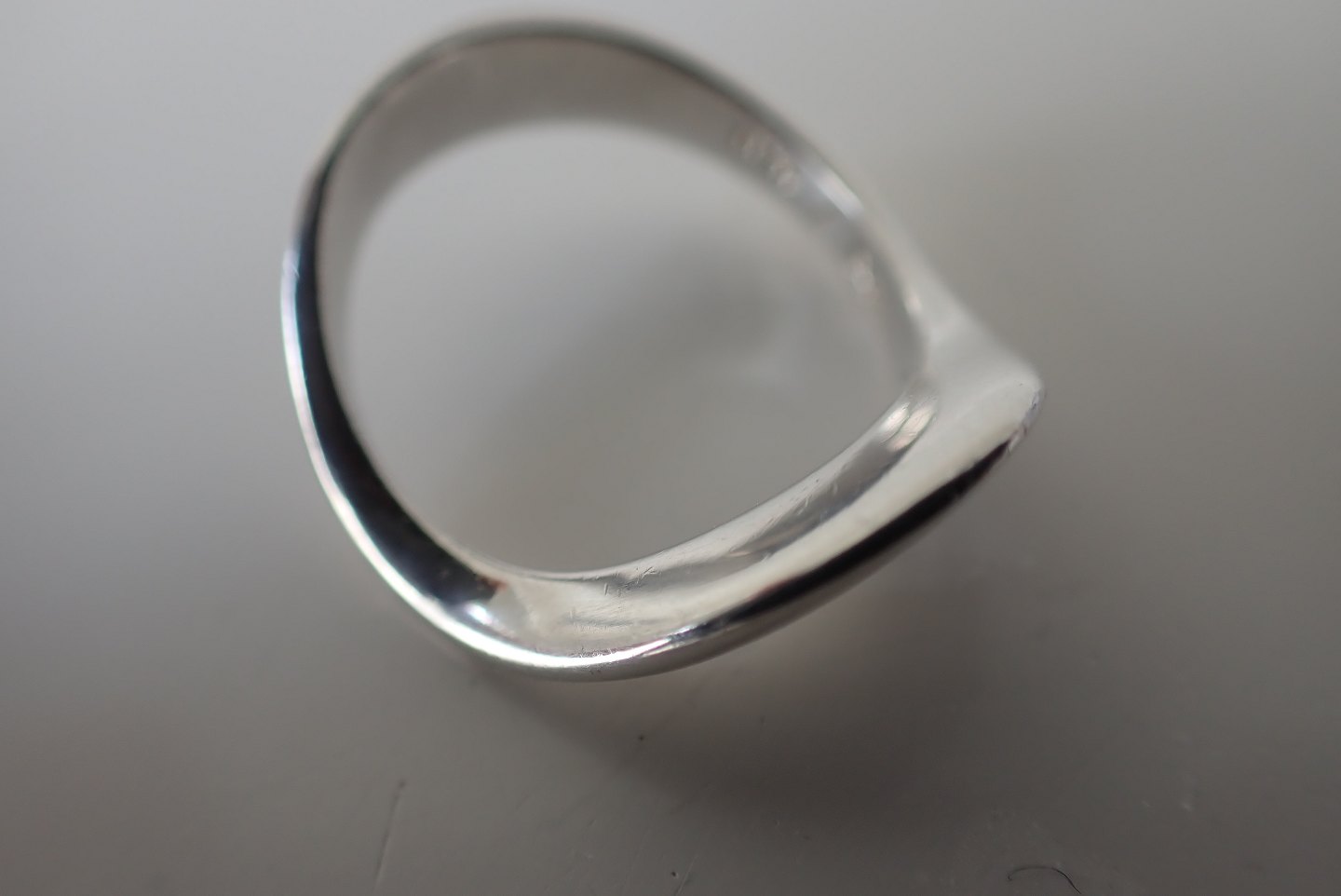 Hans Hansens Sølvsmedie (1884 - 1982) ring i sterling sølv. Stemplet 925s og Ha.H. Max. Bredde: 7 mm. Str. 54. Vægt: 3,8 gram. Ca. 1970. I pæn stand med svage brugsspor.