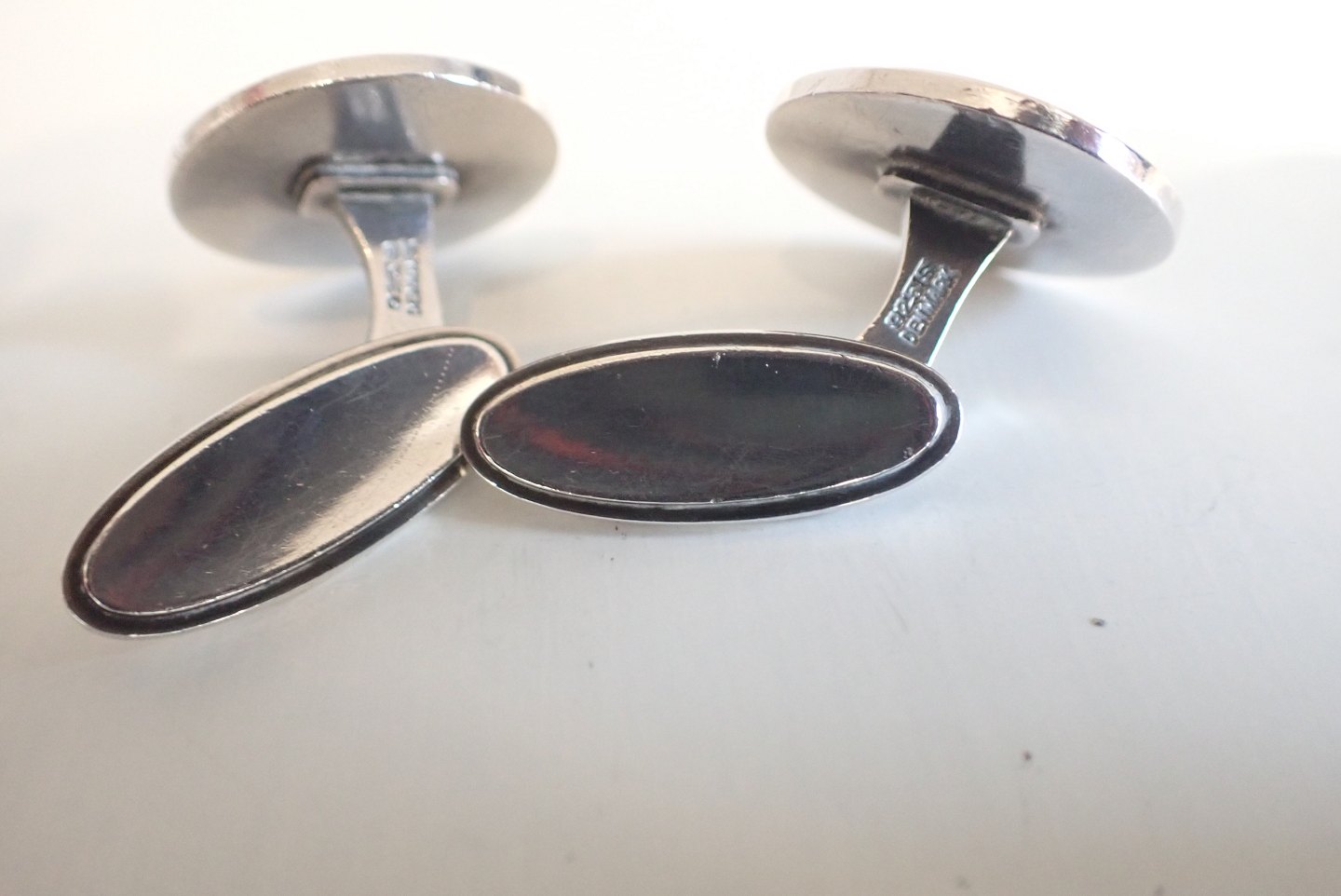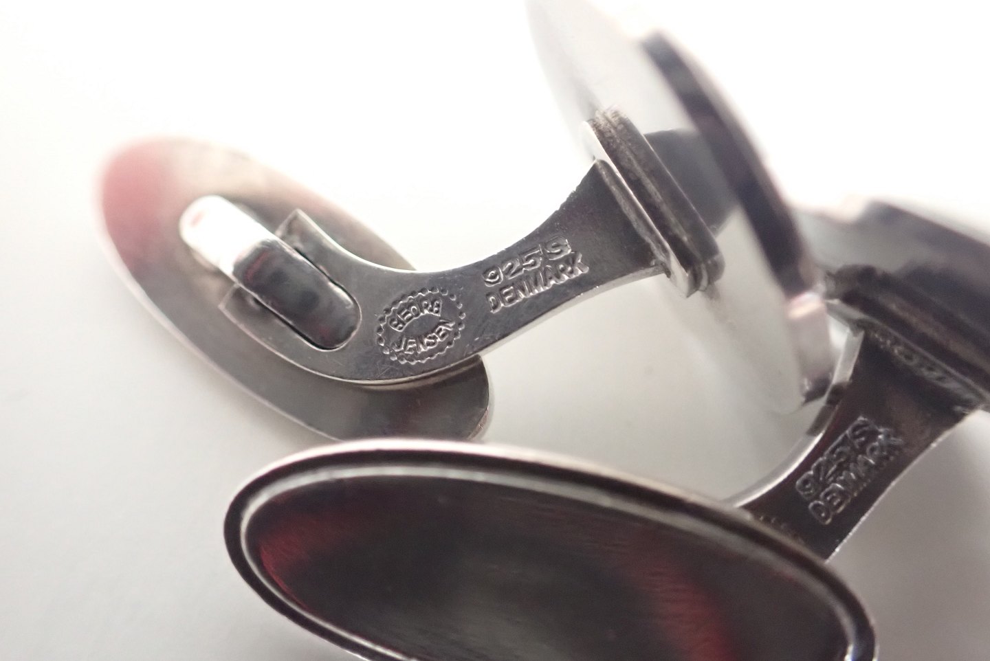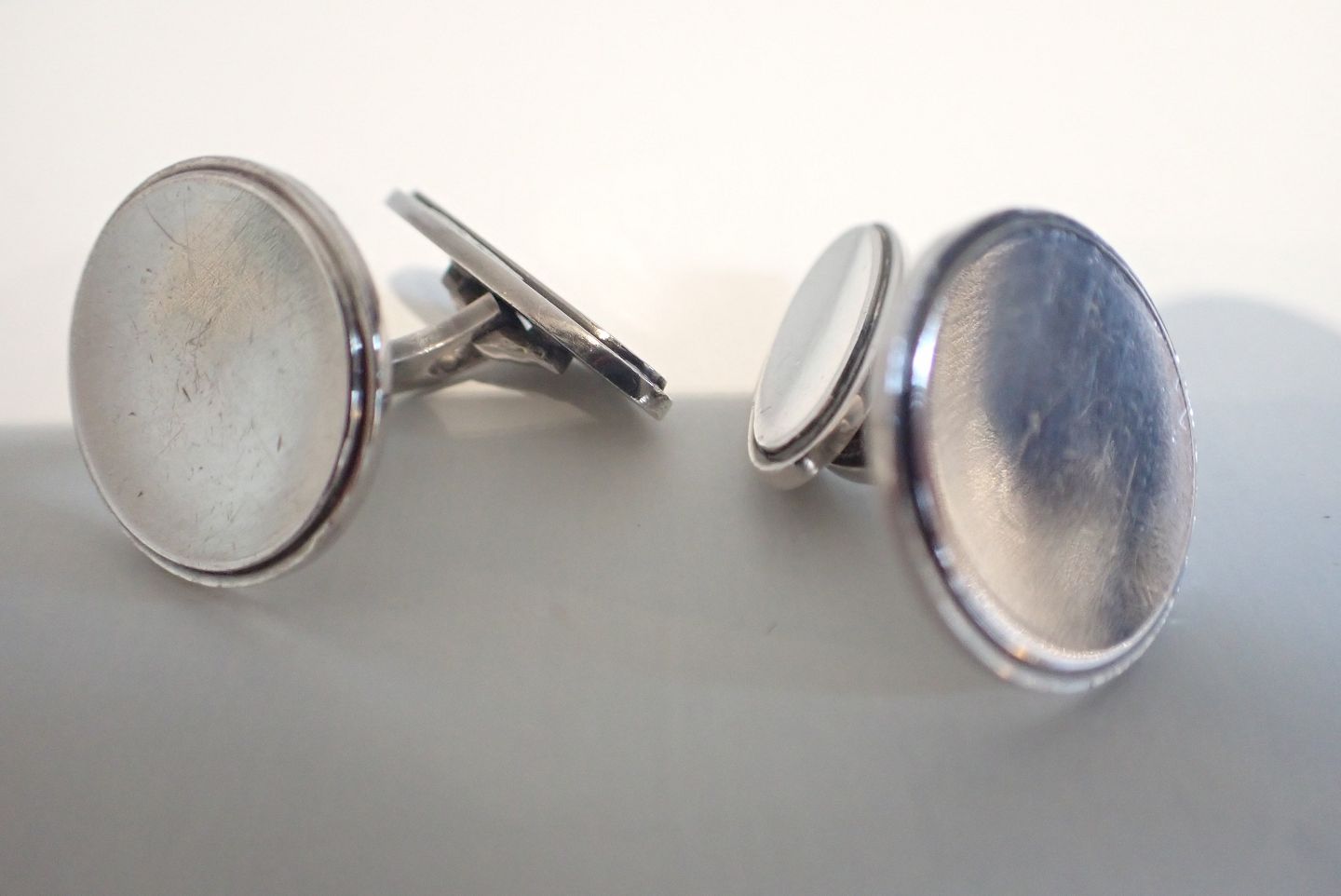 Georg Jensen - runde manchetknapper i sterling sølv. Stempel e. 1945. Dessin nr. 54. Vægt: 13,8 gram. I pæn stand med let slid.