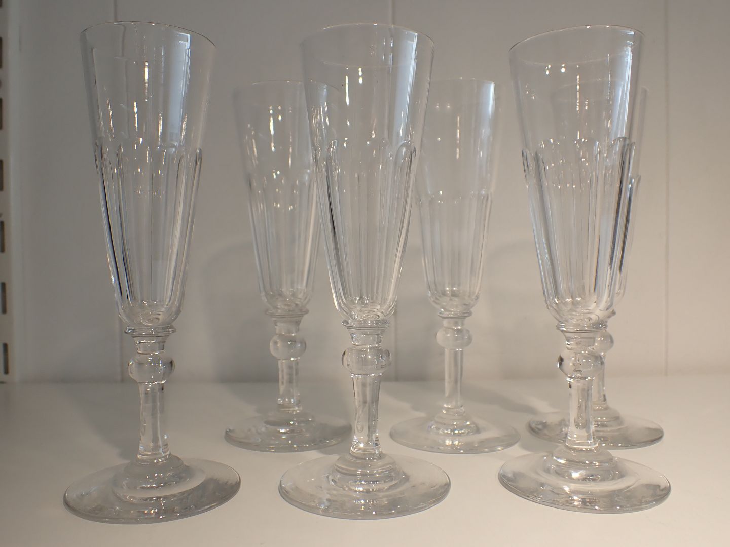6 champagnefløjter - berlinois med rund kugle på stilk. Sælges kun samlet.