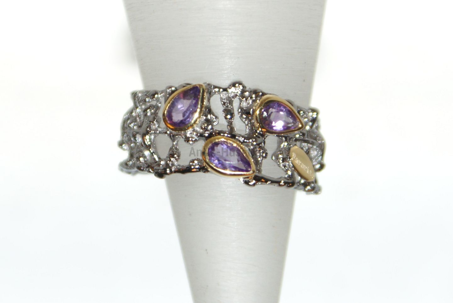 Designers Favorites ring, Sterling silver 230 Black Rhodium and 18 karat gold plating Stone: Amethyst, Pear 5 * 3-3 paragraphs. One Size Stamp: 925 Danish Perfect condition