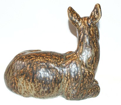 Large Royal Copenhagen Stoneware Figurine, Deer Design: Knud Kyhn. Dek. No. 20506 Factory first Height 22.5 cm. Length 24.5 cm. Beautiful and well maintained condition