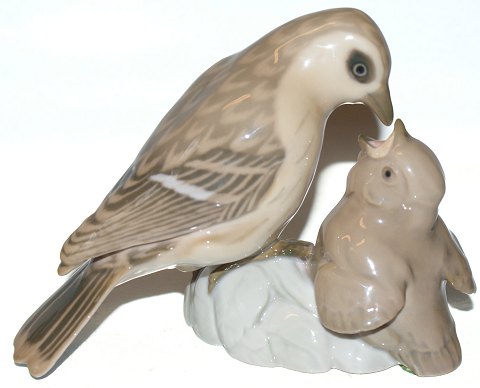 Bing & Grondahl Figurine, Sparrow with young Design: Dahl-Jensen Decoration number 1869 Factory first Length 15 cm. Perfect and well maintained condition