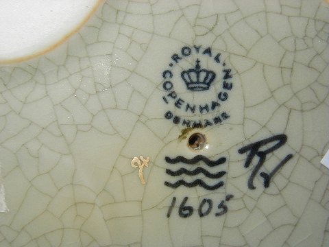 Sjælden & Stor Kongelig Figur i Grøn krakkeleret glasur af mand og kvinde med fisk. Typisk Georg Thylstrup design. Dek. nr. 1605, 1. sortering, måler 22 x 15 cm.