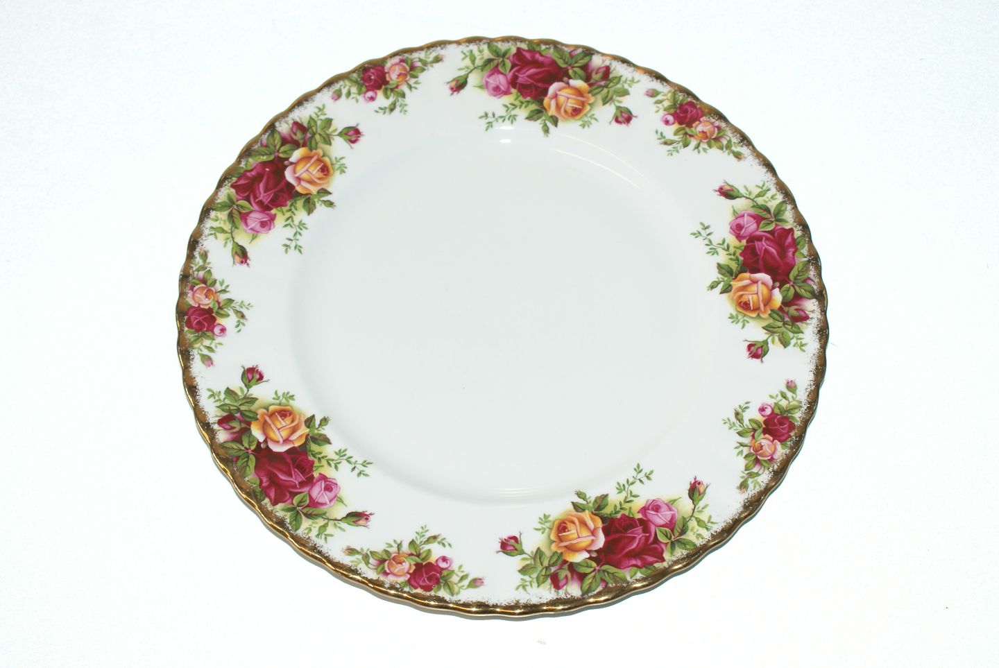 Landsbyrose, "Old Country Roses" Large Dinner Plate English porcelain, Royal Albert. Decorated with flowers and gold edge. Diameter 26,5 cm. Beautiful and well maintained condition