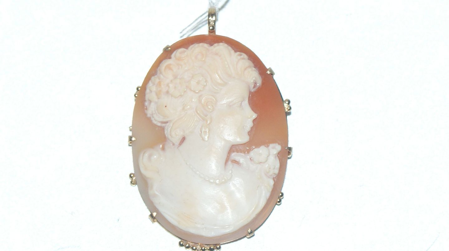 Stor Broche eller Vedhæng med Camé, 14 Karat