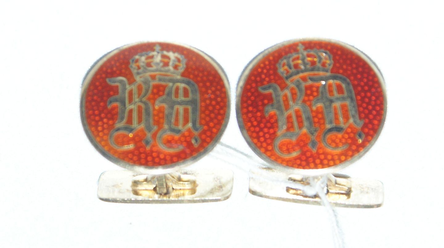 Gold-plated silver cufflinks with enamel Stamp: Norvay Sterling, 925S XX Diameter 1.8 cm. Beautiful and well maintained