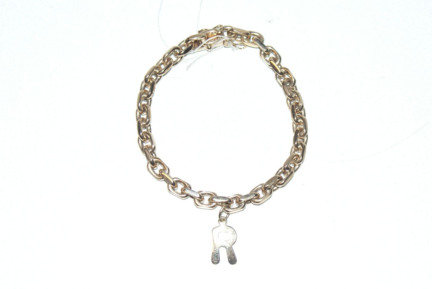 Anchor chain Facet bracelet with pendant "R" Gold, 14 karat