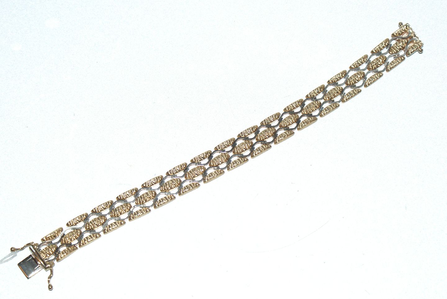 Bracelet 14 karat gold Stamped: 585 Length 18.5 cm. Width 12 mm. Thickness 3.3 mm. Beautiful and well maintained condition. The jewel checked by jeweler The product is not physically in the store, please contact us for viewing.