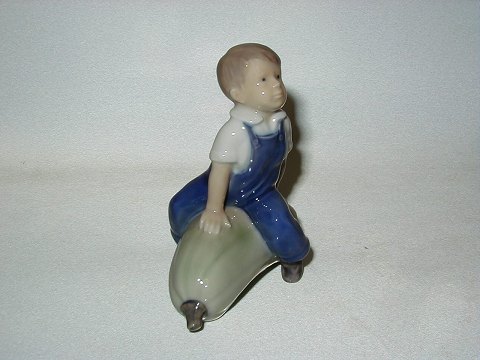 Royal Copenhagen Figurine Boy sitting on Pumpkin Decoration number 4539 Factory first Height 12 cm., length 10.5 cm. Perfect Condition