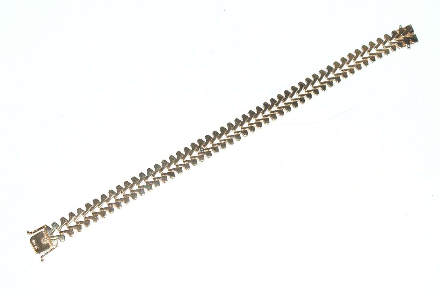 Bracelet, 14 karat gold Stamp: Chr.V, 585 Goldsmith: 1963-1986 Chr. Veilskov Length 20 cm. Width 10.4 mm. Thickness 2 mm. The jewel checked by jeweler The product is not physically in the store, please contact us for viewing.