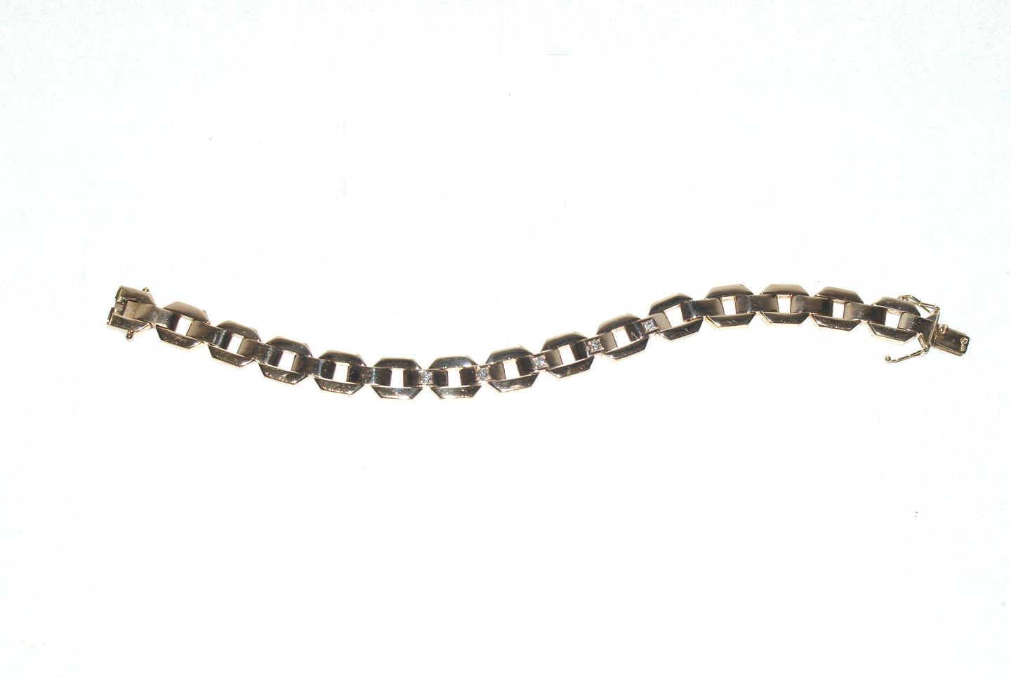 Bracelet with 5 Diamonds 14 Karat Gold Rosa The stamp: 585, Length 19.5 cm. Width 1 cm. Thickness 0.3 cm. Beautiful and well maintained condition. The item is not physically in the store.