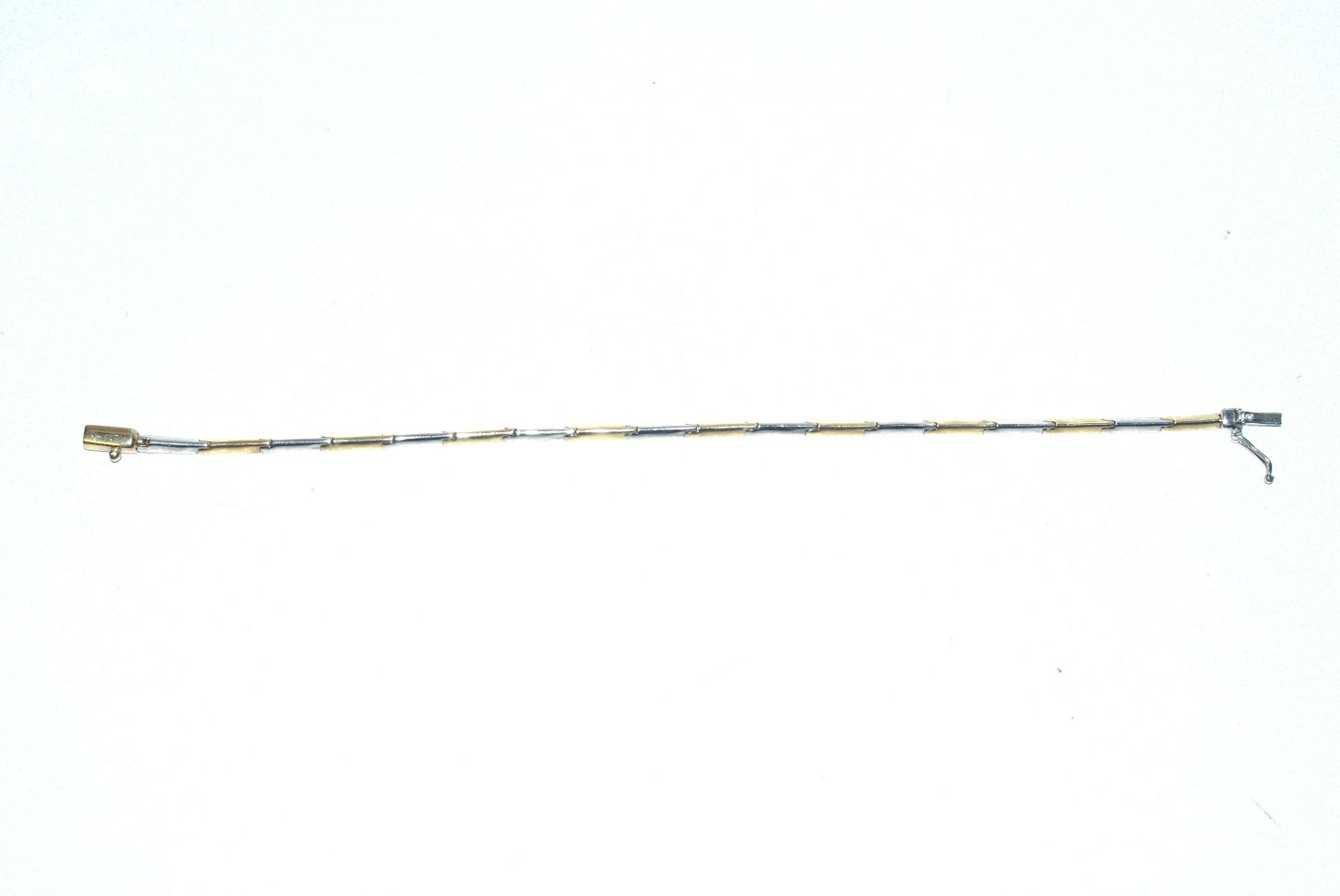 Elegant Bracelet two-colored gold, 14 Carat Stamp: 14K Length 19 cm. Width of 3 mm. Thickness 2.6 mm. The jewelery checked by goldsmith The product is not physically in the store, contact us for viewing.