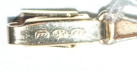 Guld Armbånd med sten, 14 Karat Stempel: 777, 585, X8 Længde 18,3 cm. Bredde 5 mm. Tykkelse 3,5 mm Flot og velholdt stand. Varen findes ikke fysisk i butikken