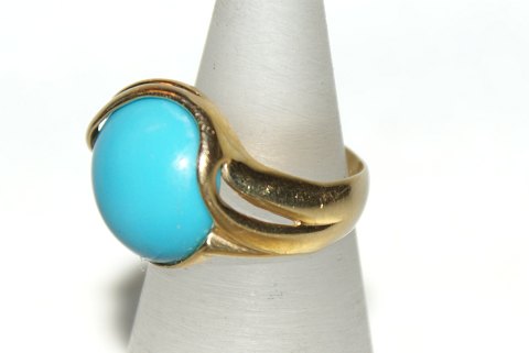 Guldring med indlagt turkis, 18 Karat Stemplet: 750 Størrelse: 53 / 16,87 mm. Ingen eller næsten ingen brugs slidtage Varen findes ikke fysisk i forretningen Kontakt os for fremvisning
