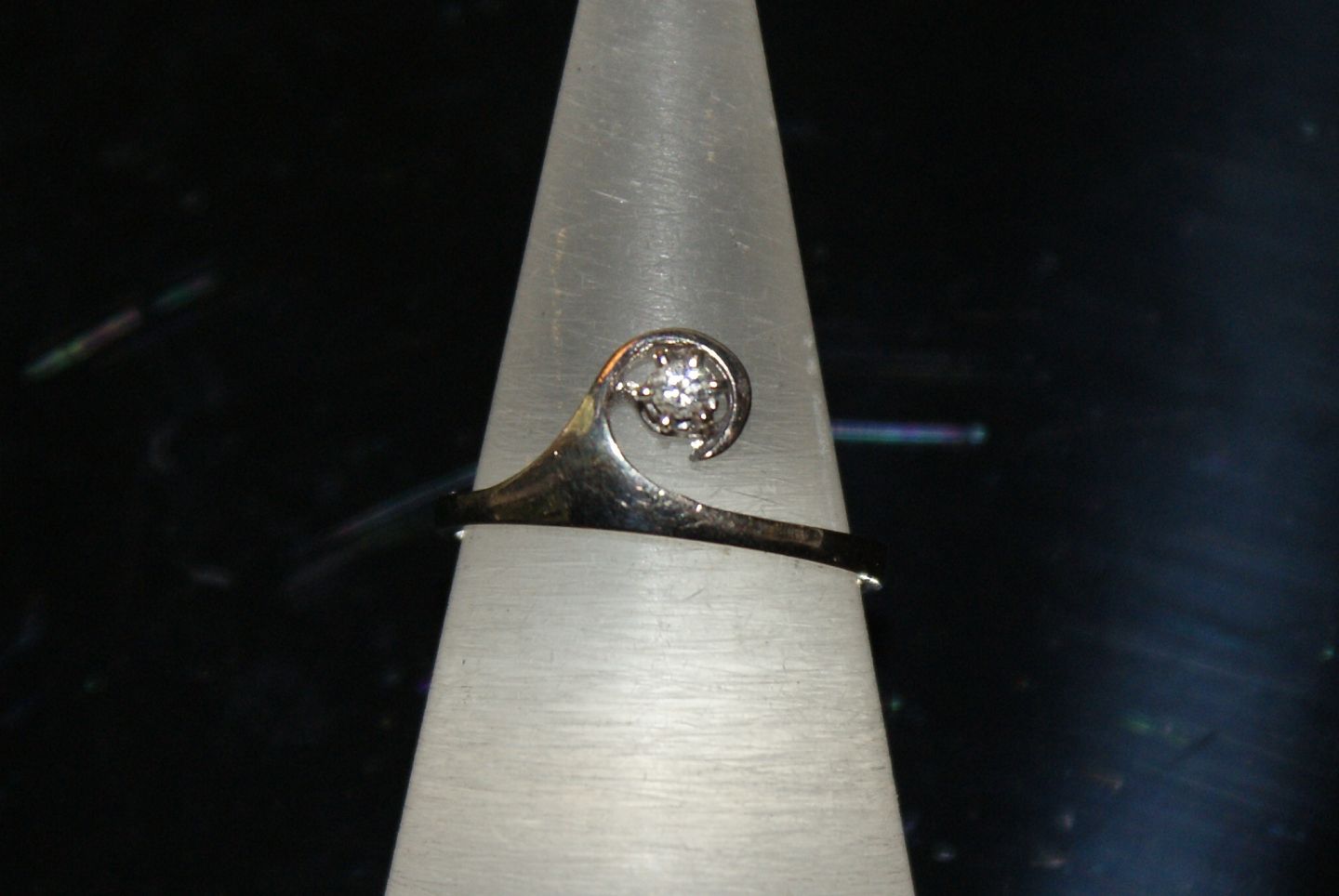 14 Karat Damering i hvidguld med Brillant Stemplet: 585, Utydeligt mesterstempel Størrelse 55 / 17,51 mm. Flot og velholdt stand. Varen findes ikke fysisk i butikken. Kontakt os for fremvisning