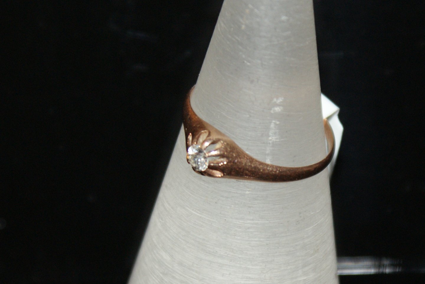 Guldring med Brillant 14 Karat Stemplet: 585, Størrelse 53,/ 16,87 mm. Flot og velholdt stand. Varen findes ikke fysisk i butikken. Kontakt os for fremvisning
