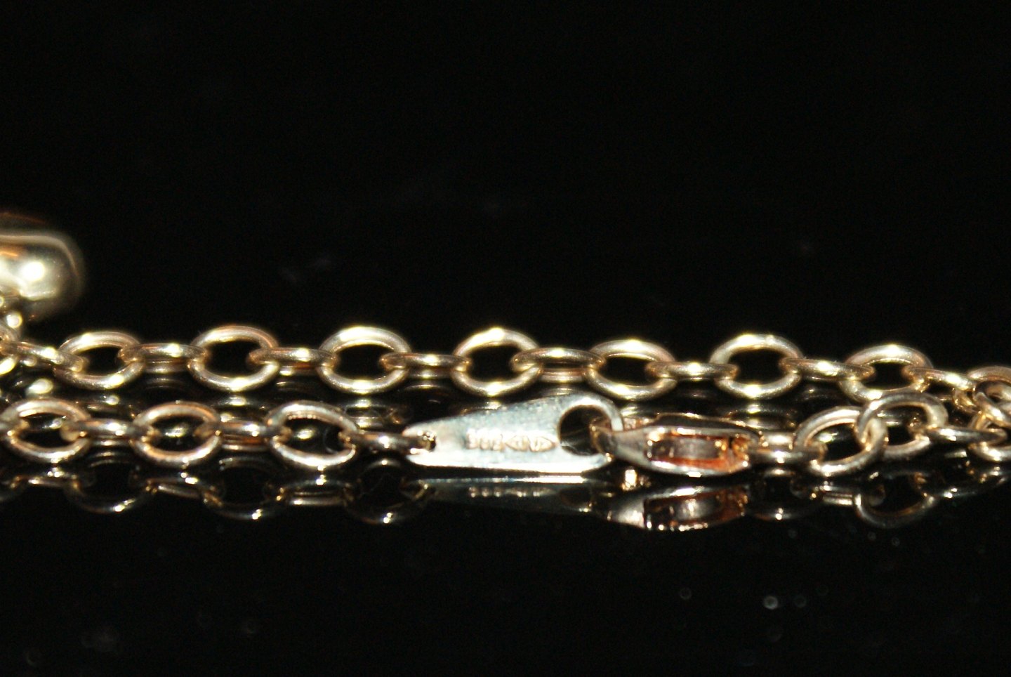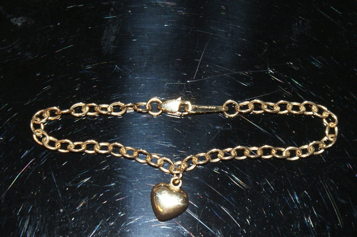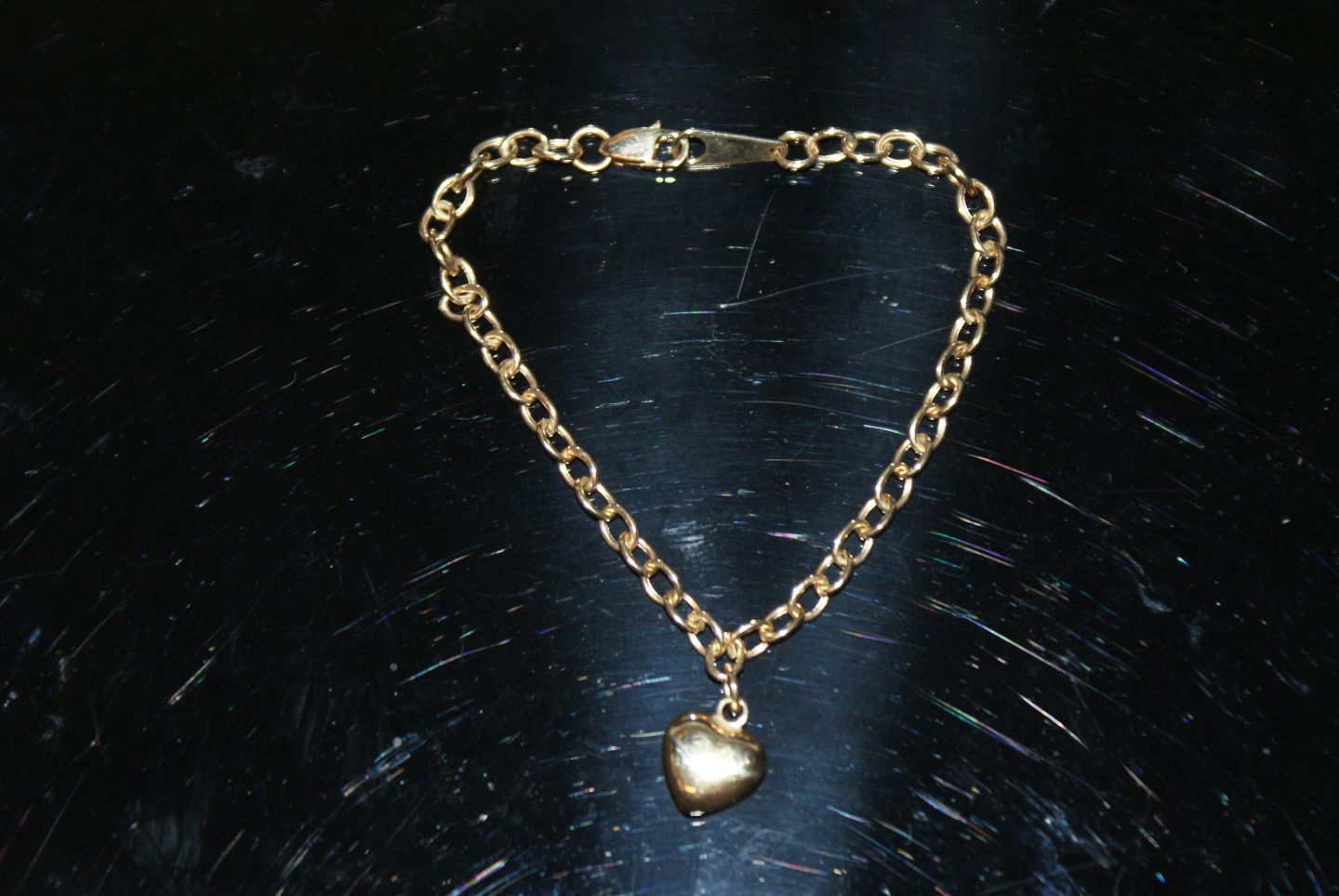 Child bracelet with heart, 14 carat Gold Stamp: 585 Width of 3 mm. Length 14.5 cm. Wire thickness 0.7 mm. Adorned checked by goldsmith The product is not physically in the store, contact us for showcasing