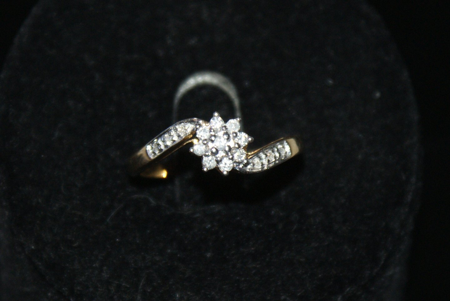 Guldring med brillanter, 9 Karat Stemplet: DIA. Størrelse: 55 / 17,51 mm. Perfekt stand Varen findes ikke fysisk i butikken, kontakt os for fremvisning