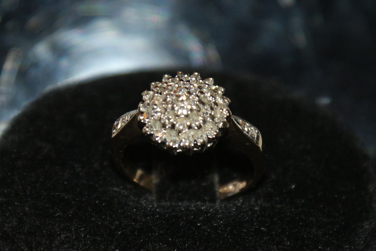Guldring med Brillanter, 9 Karat Stemplet: Dia. Engelske stempler Ringstørrelse 51 / 16,23 mm. Ingen eller næsten ingen brugs slidtage Varen findes ikke fysisk i forretningen Kontakt os for fremvisning