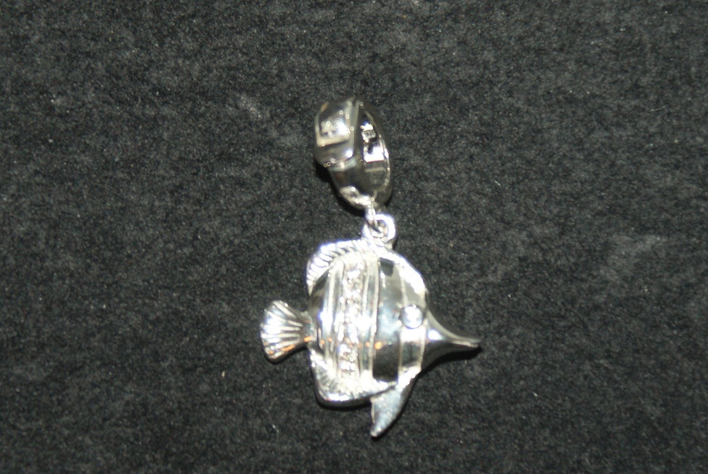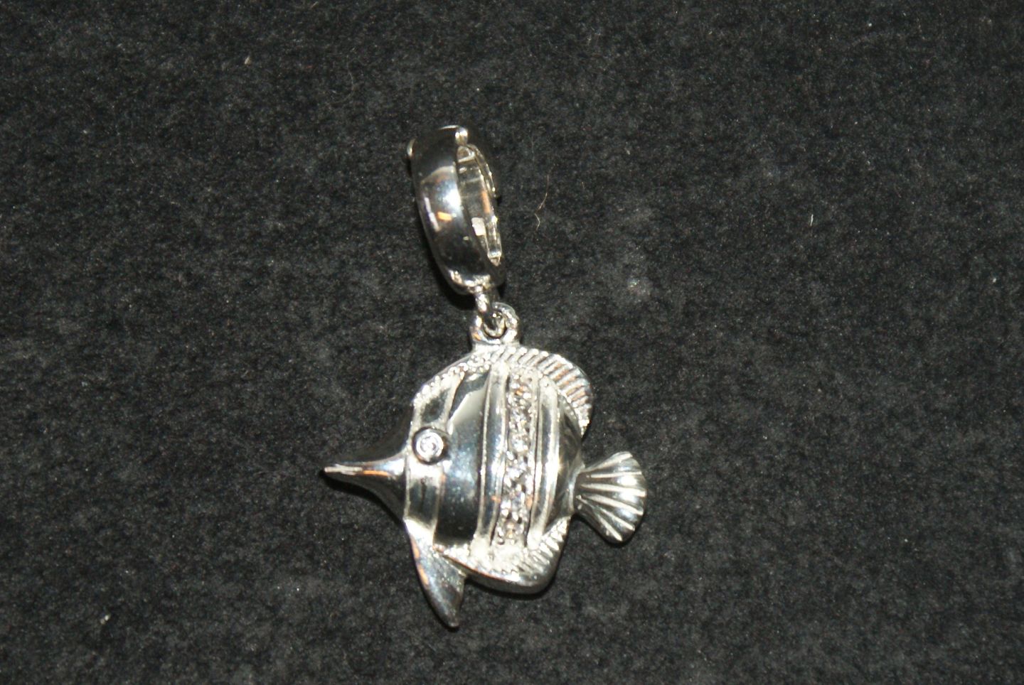 Pendant / Charms of fish, Sterling silver The stamp: 925, JAA Length 3 cm. Width 1.8 cm. Beautiful and well maintained condition. See also: http://www.antik-huset.dk/produkter/smykker.html