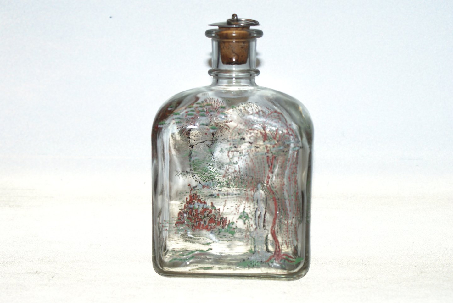 Schnapps decanter with painting Holmegaard Subject: The little mermaid Design: Lars Bo Height 16.5 cm. Without plug Beautiful and well maintained condition.