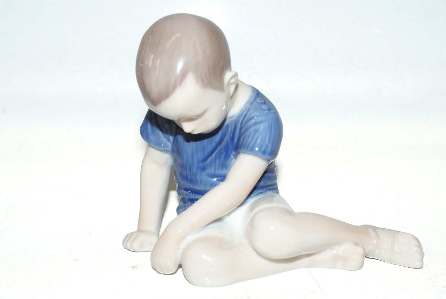 Bing & Grondahl figure, sitting boy. The factory mark shows that this is from 1970 to 1983. Decoration number 1671. 1st sorting. Length 12.0 cm. Perfect condition without fault.