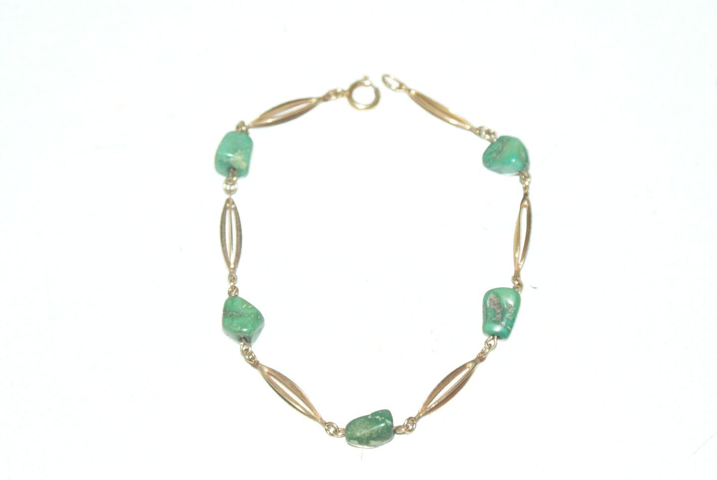 Elegant Gold Bracelet with green Turkish stone 14 carat Piston 585 Length 20 cm Nice and well maintained condition. The item is not physically found in the store. Contact us for viewing