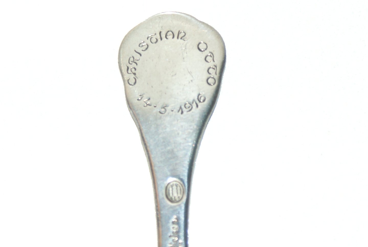 Evald Nielsen Nr. 1 Barneske m/ Gravering Længde 13,5 cm. Velholdt stand Alt bestik er polleret og pakke i pose