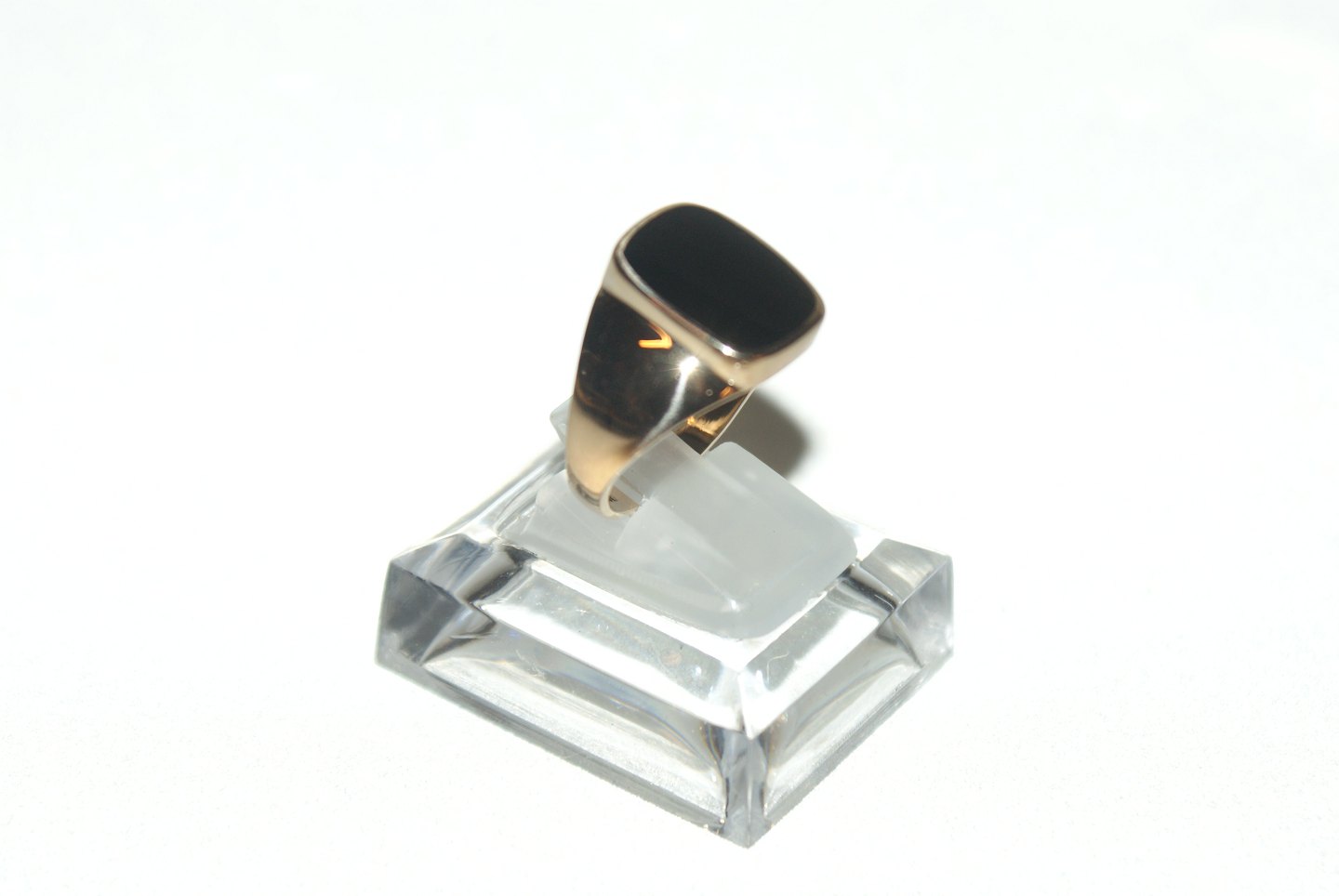 Signetring i 14 karat guld med sort onyx Stemplet 585 Størrelse 62 Pæn og velholdt stand Tjekket af guldsmed, Smykket findes ikke fysisk i butikken, men kan fremvises efter ønske. Kontakt os gerne for en fremvisning.