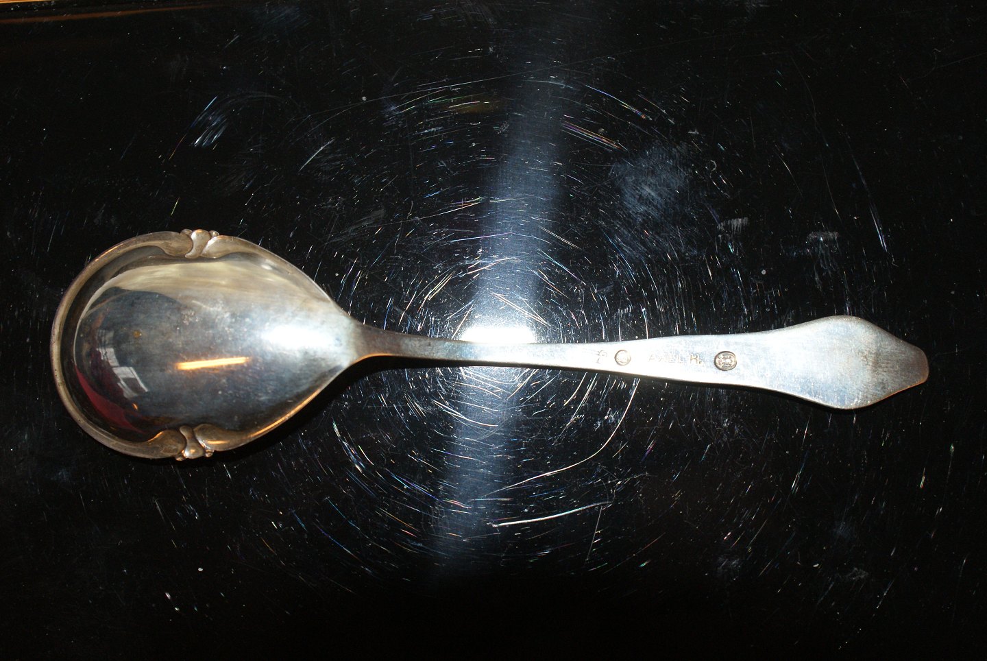 Amalienborg Silver Marmalade Spoon Length 14.4 cm. Well maintained condition Polished and packed in bag https://www.antik-huset.dk/amalienborg-solv-marmeladeske.html