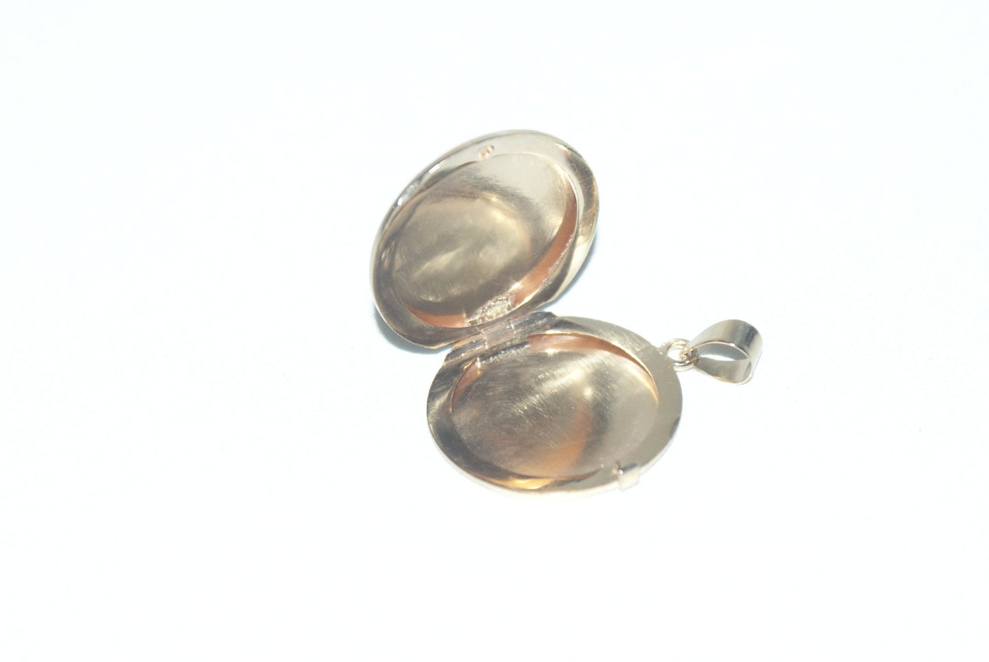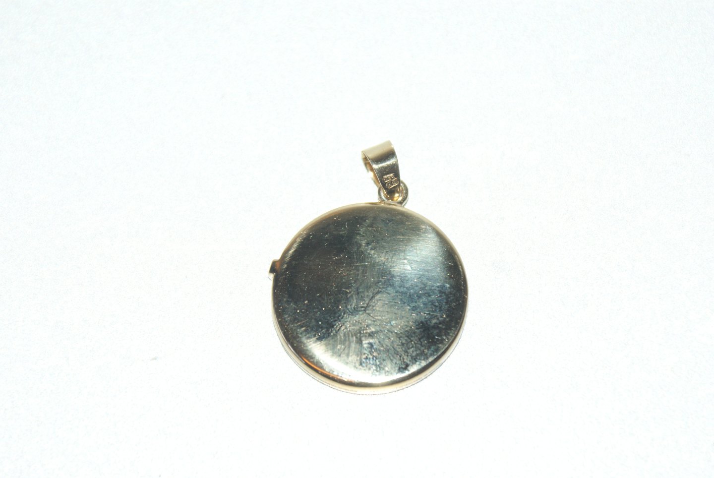Medaljon i 14 karat guld Stemplet 585 Højde 36,58 mm Brede 26,94 mm Tykkelse 3,70 mm Pæn og velholdt stand Smykket tjekket af guldsmed Varen findes ikke fysisk i butikken, kontakt os for fremvisning