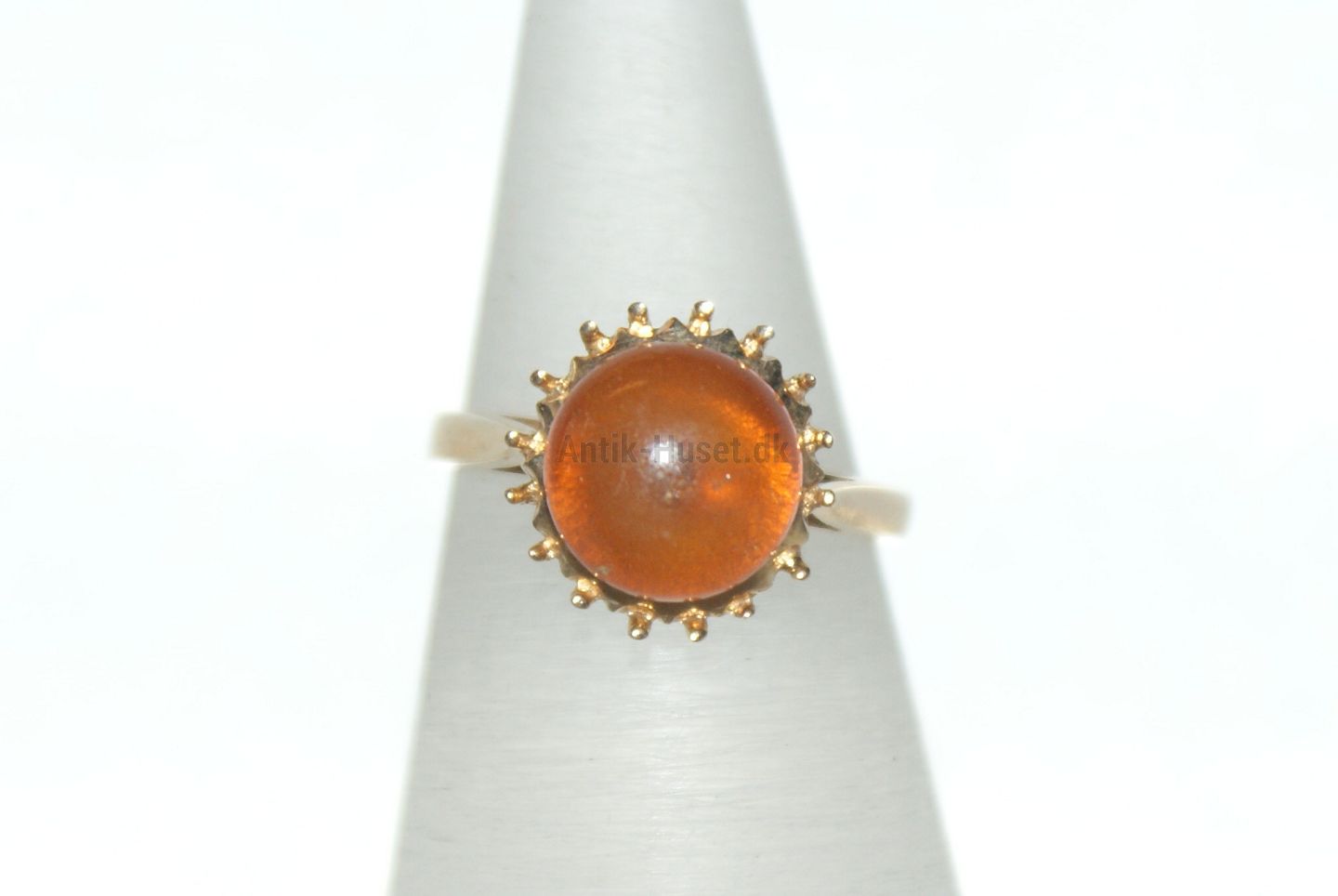 Guldring med Rav 14 Karat Stemplet: 585, AMBERGULD Størrelse: 52 /16,55 mm. Ingen eller næsten ingen brugs slidtage Varen findes ikke fysisk i forretningen Kontakt os for fremvisning