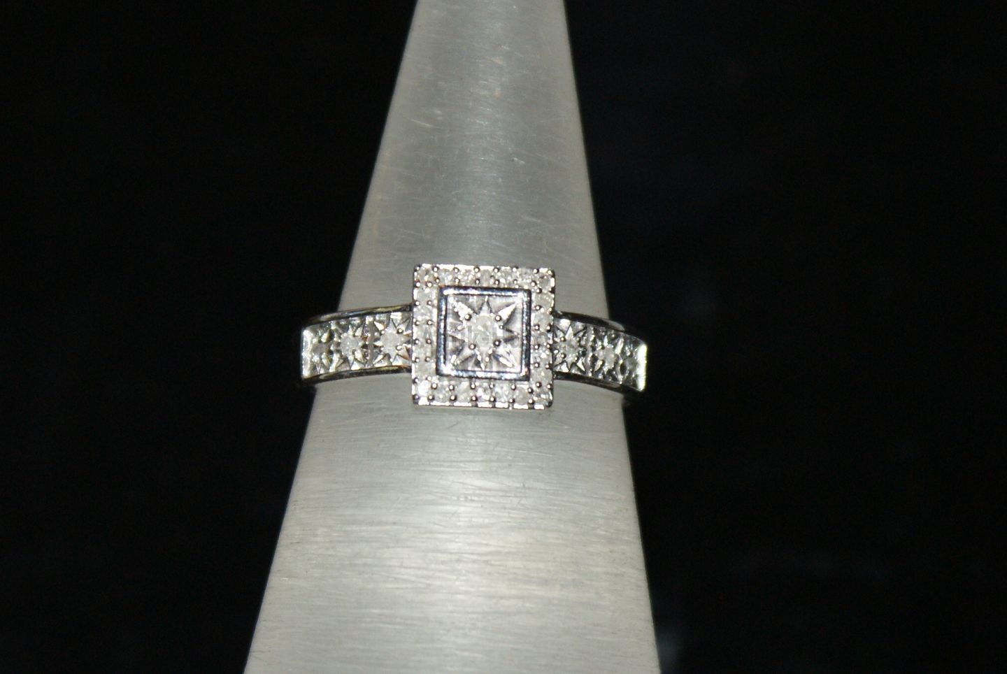 White gold ring with diamonds 9 carat Stamp: 375 Size 54, 17.2 mm. Beautiful and well-maintained condition. The ring is not physically available in our store, but please contact us for a viewing.
