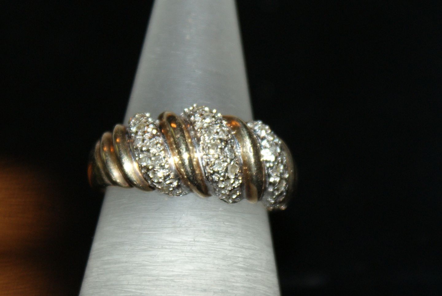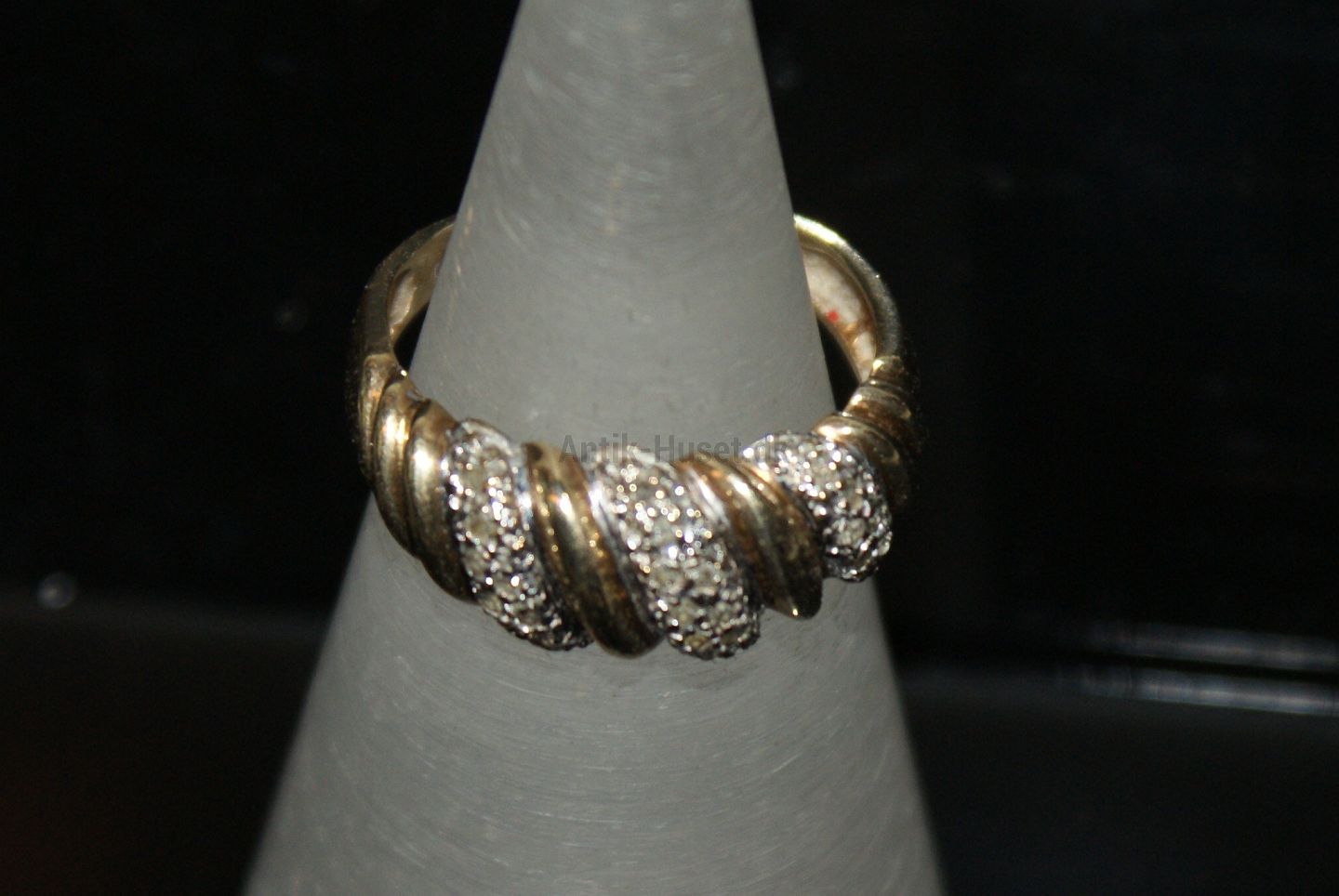 Guldring med Diamanter, 9 Karat Stemplet: Dia, 9K, 375 Størrelse 55, 17,51 mm. Flot og velholdt stand. Varen findes ikke fysisk i butikken.