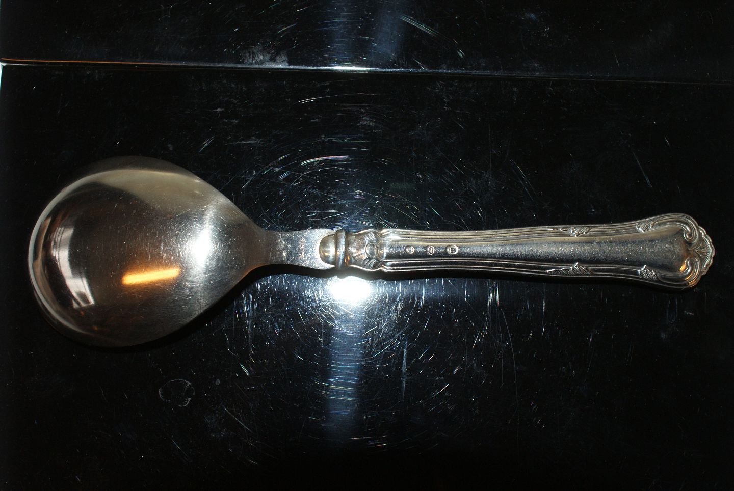Herregaard silver Potato spoon with / Stainless Steel Cohr. Length 20.5 cm. Well kept condition All polished cutlery and packing in the bag