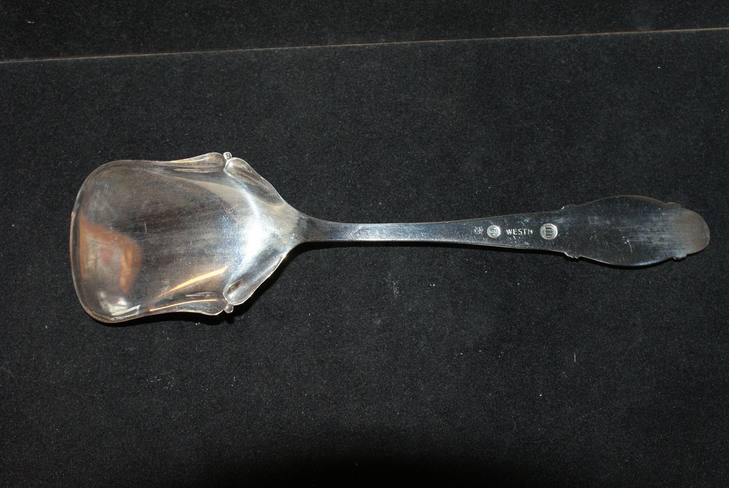 Serveringsspade Frijsenborg Sølvbestik Længde 17,5 cm. Velholdt stand Bestikket er poleret og pakket i pose.