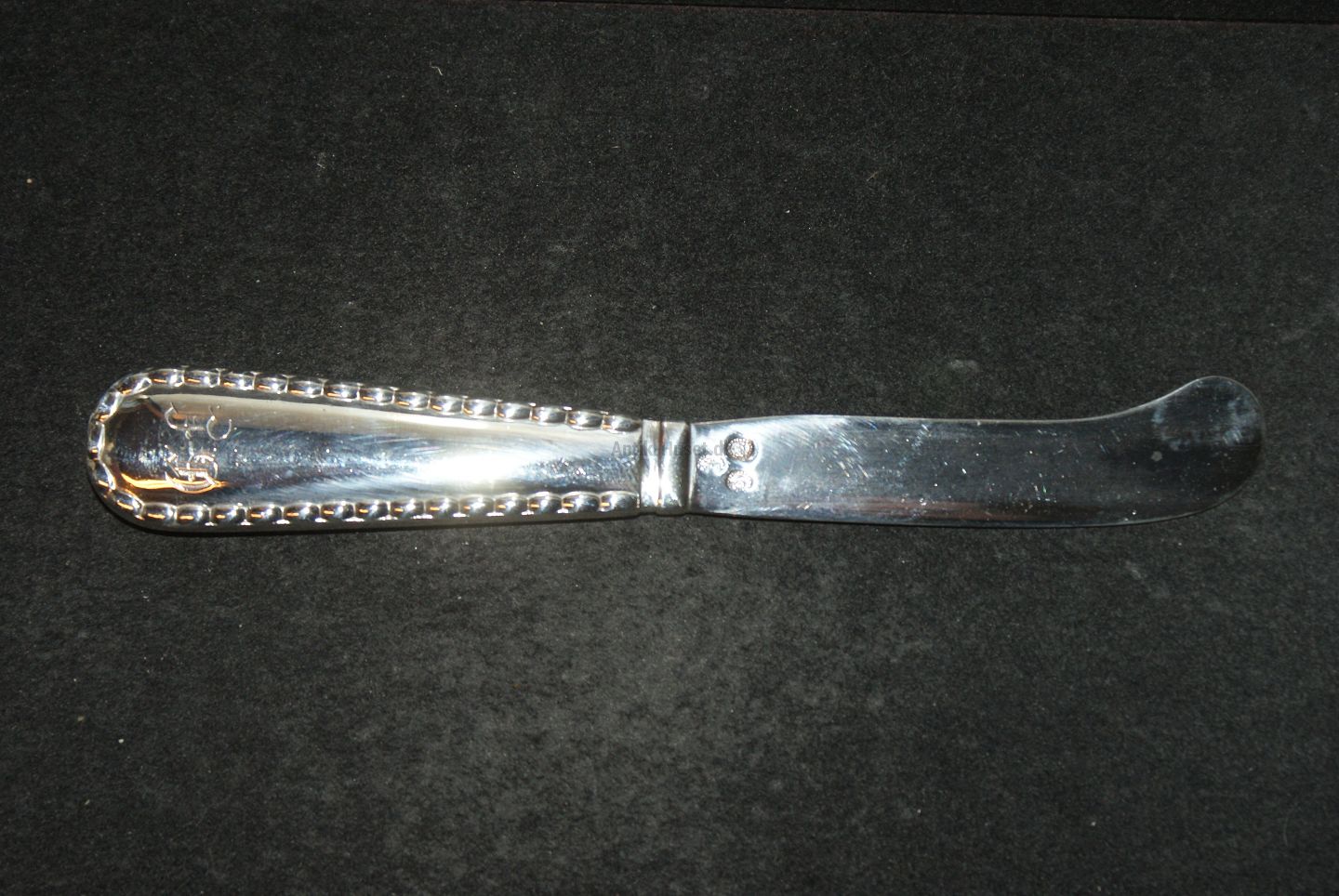 Smørkniv Sølv klinge # 374 Perle / Rope # 34 Georg Jensen Længde 14 cm. Velholdt stand Alt bestik er polleret og pakke i pose