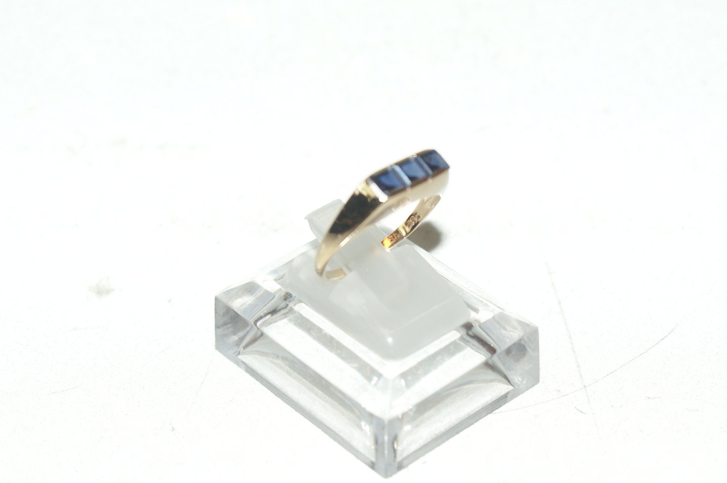 Elegant Ladies' Ring in 14 carat gold with dark blue stones