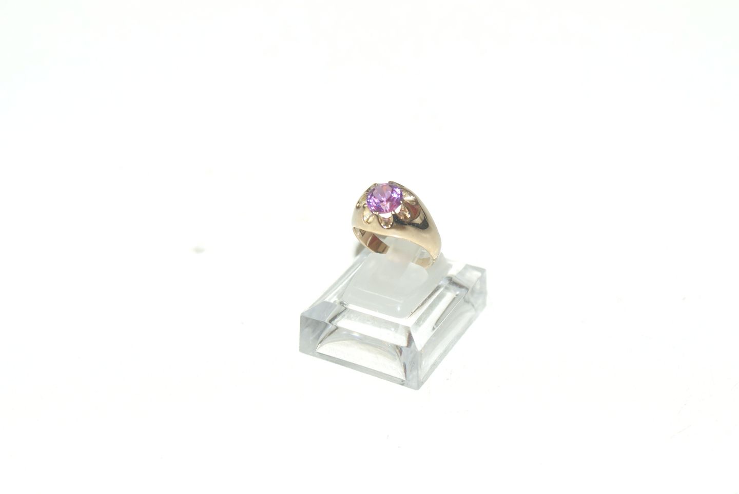Elegant ladies ring in 14 carat gold with purple / pink stone Stamped 585 bra Size 57 Nice and Well Maintained. The item is not physically available in the store, contact us for viewing.