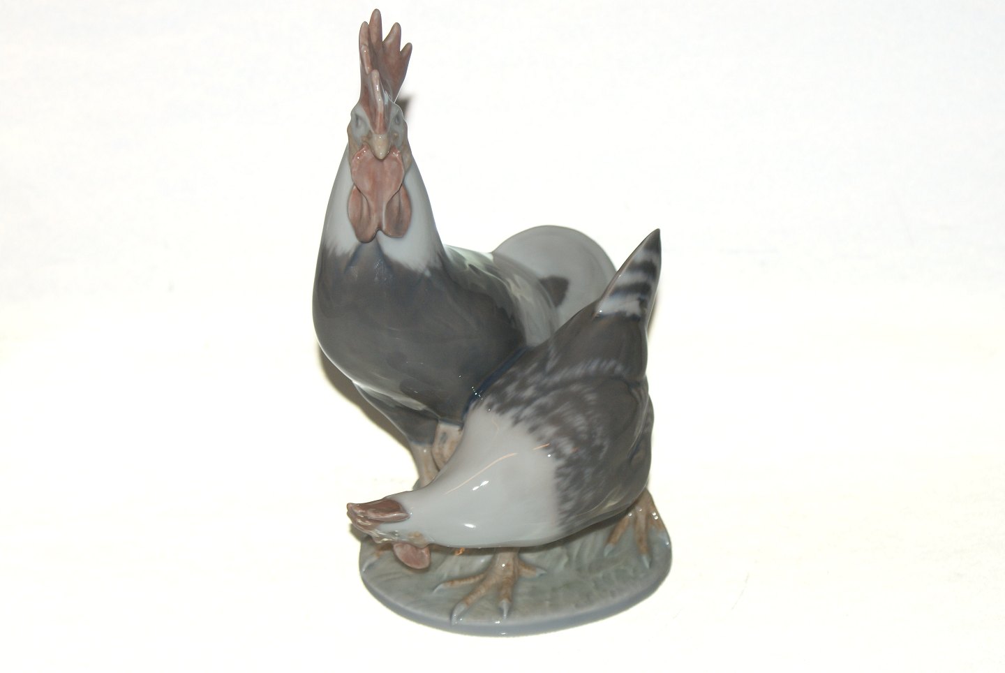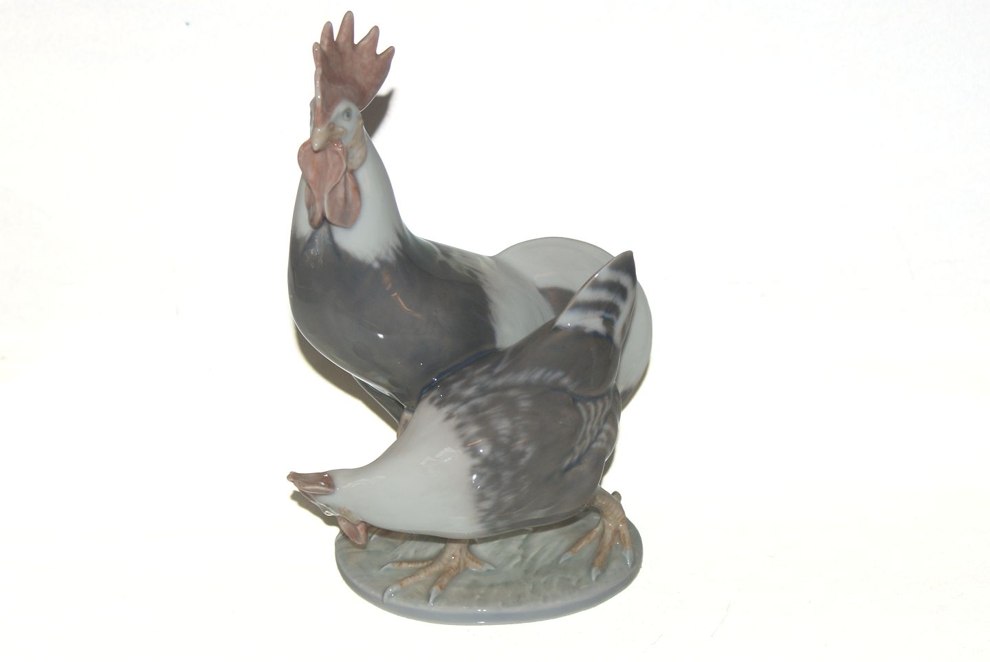 Large and rare Royal Copenhagen figure, Rooster & Hen.