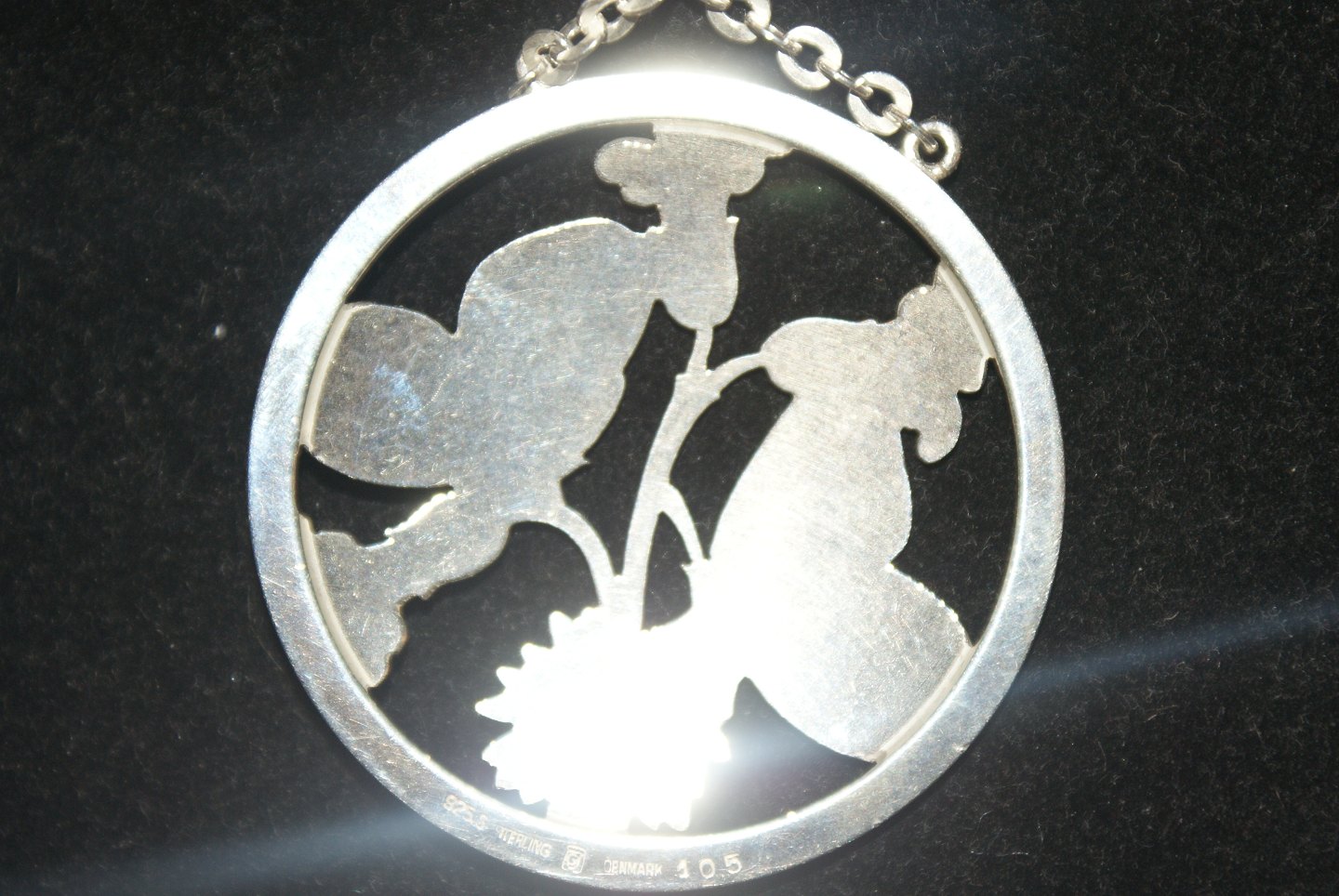 Georg Jensen Necklace in sterling silver # 53 Designed by Arno Malinowski 1899 - 1976. Stamped with 1933-44 GJ stamps Pendant diam. 5.5 cm. Chain L. 75 cm. Nice and well maintained condition