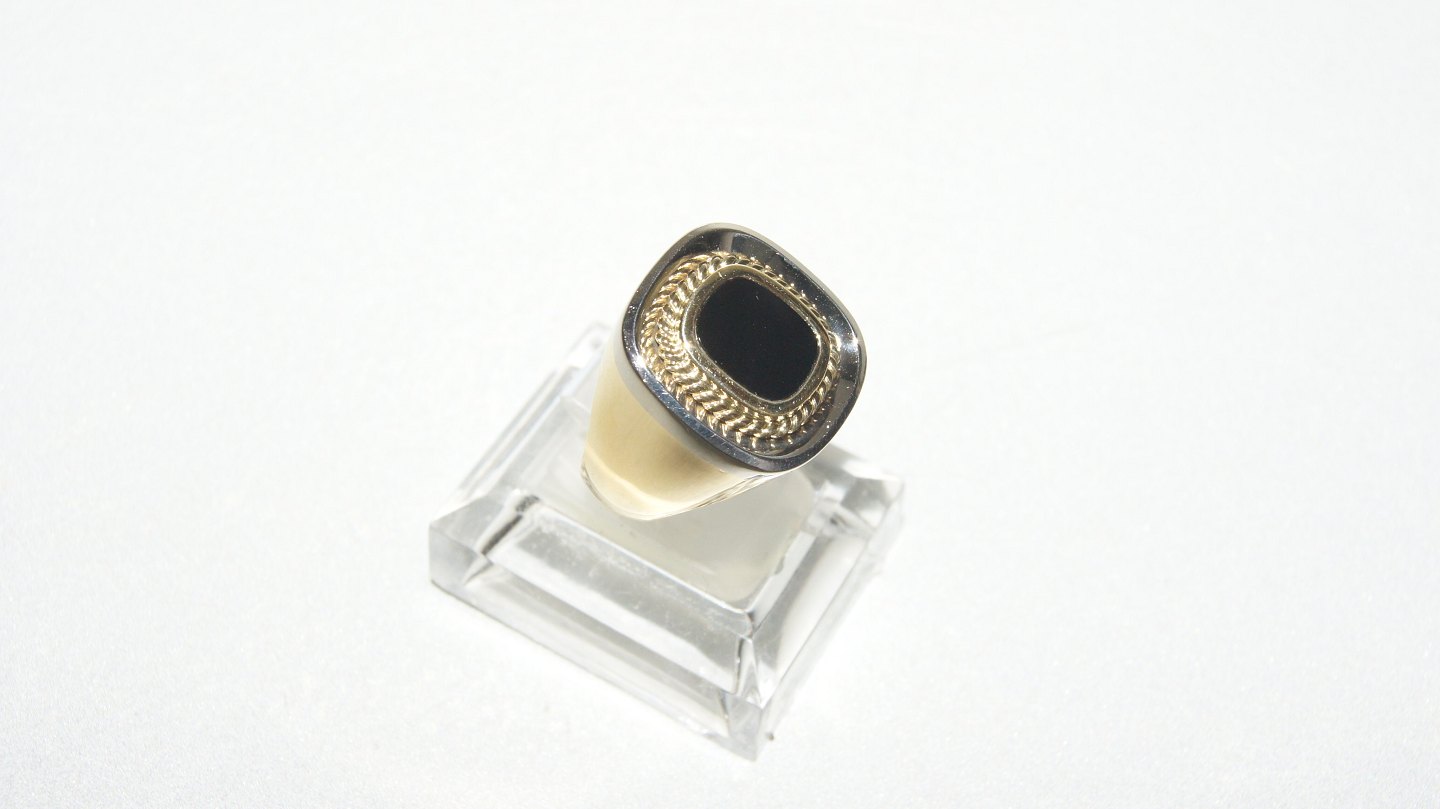 Herrering med sort onyx 18 karat rød / hvidguld Stemplet CM 750 Størrelse 67 Perfekt stand Tjekket af guldsmed, Smykket findes ikke fysisk i butikken, men kan fremvises efter ønske. Kontakt os gerne for en fremvisning