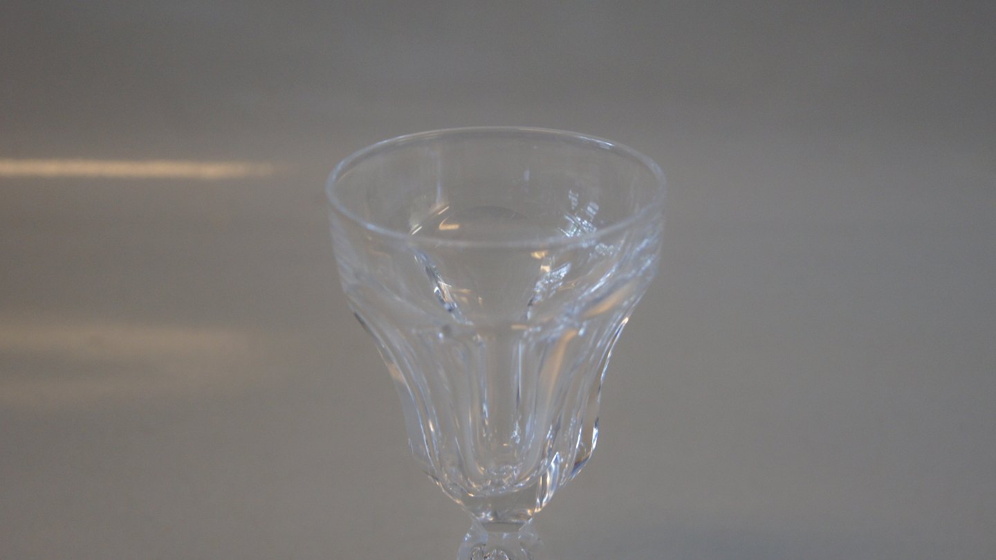 Lalaing crystal glass with facet cuts, hexagonal foot plate.