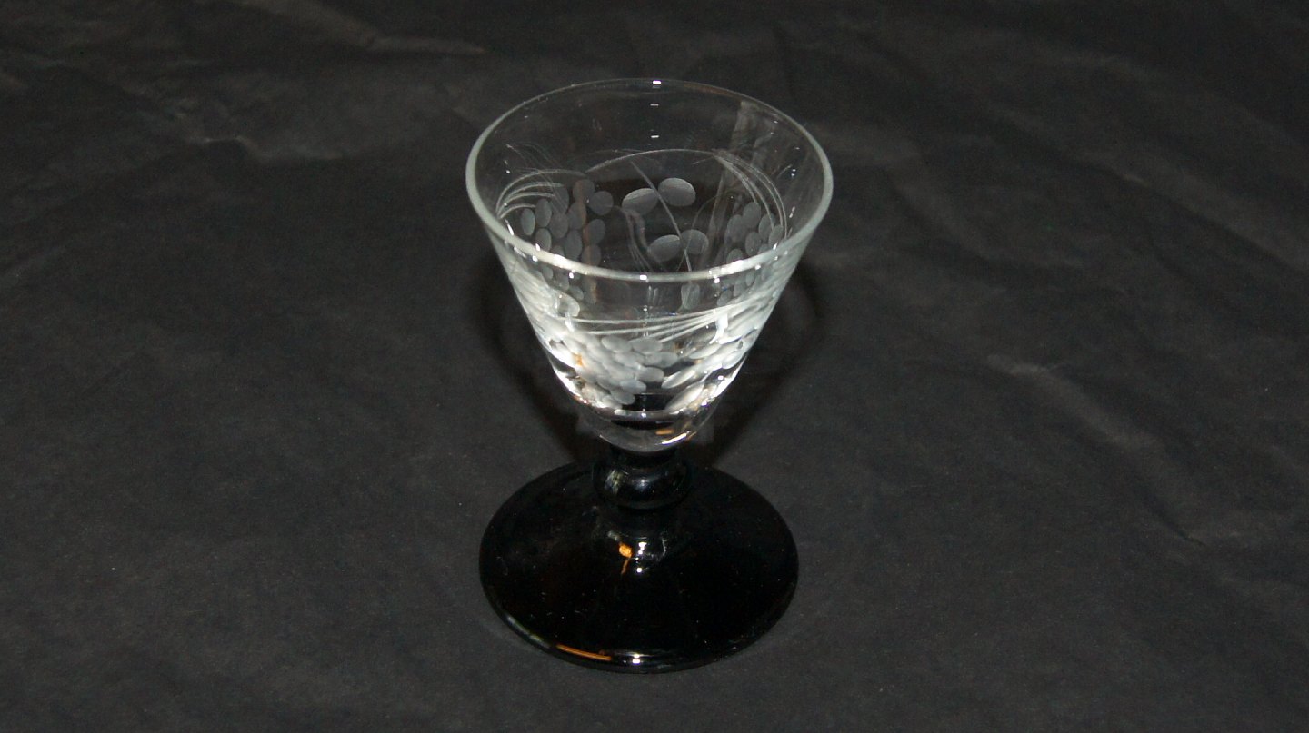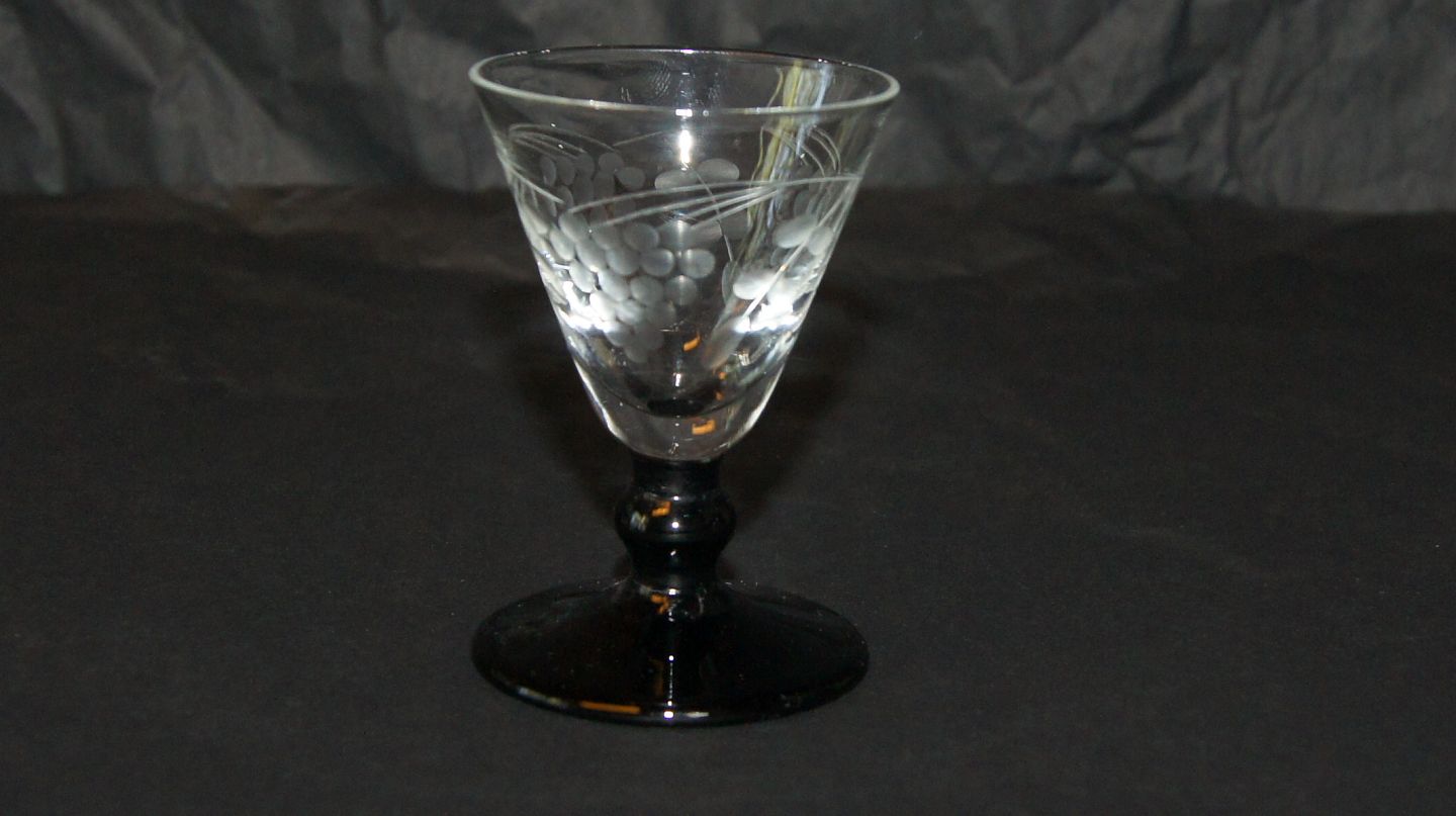 Snapseglas # Holmegård With Black foot and grape vine Height 6.8 cm Nice and well maintained condition