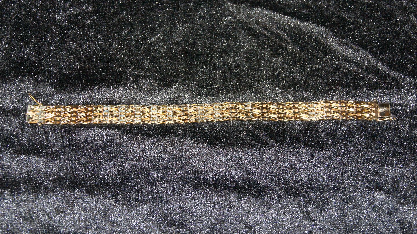 Elegant Bracelet 14 Carat Gold Stamped EEJ 585 Length 19.5 Cm Width 10.96 mm Thickness 1.71 mm Nice and well maintained condition The item has been checked by a jeweler and is not physically found in our store